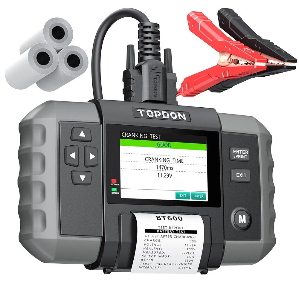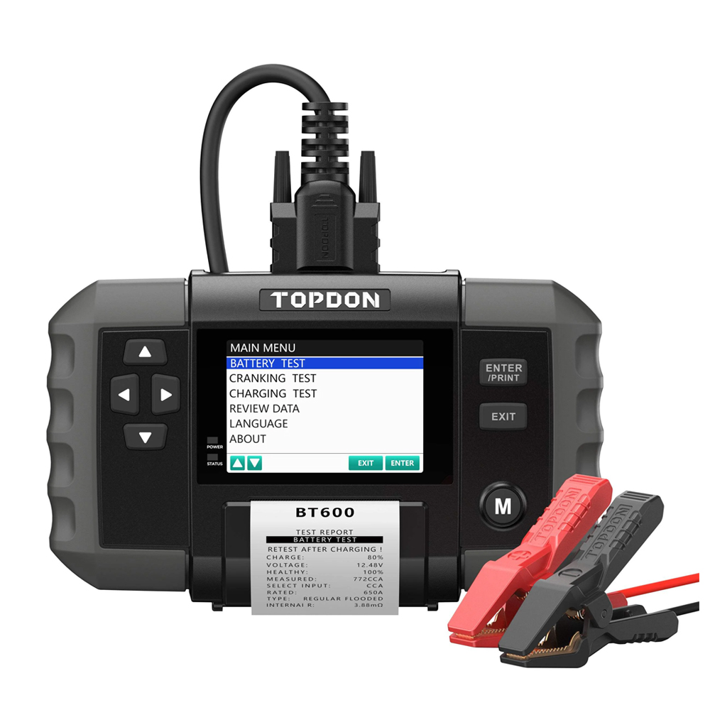 BT600 es el comprobador de batería avanzado más nuevo de TOPDON para vehículos de 12 V. Con una pantalla a color de 3,5 pulgadas y una impresora térmica incorporada, esta herramienta ofrece la solución definitiva para realizar pruebas precisas, rápidas y cómodas. Le permite ver fácilmente el estado de la batería e imprimir informes de prueba en tiempo real.